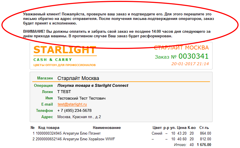 Обратите внимание на дополнительную информацию, размещенную в шапке подтверждения.