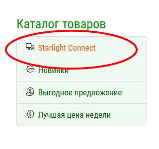 Работа на странице построена по тому же принципу, что и в основном каталоге. Все товары на странице «Starlight Connect» выстроены по алфавиту 24 товара на странице. Вы можете смотреть список постранично, или увеличить число товаров на странице и уменьшить число страниц, или открыть все товары на одной странице.