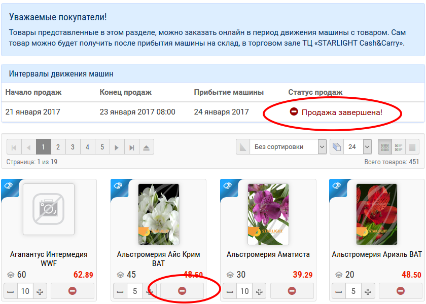 - возможность купить или добрать к уже существующему заказу на ближайшую дату поставки цветы по объявленной минимальной цене. После прихода машины на склад цена может быть увеличена.