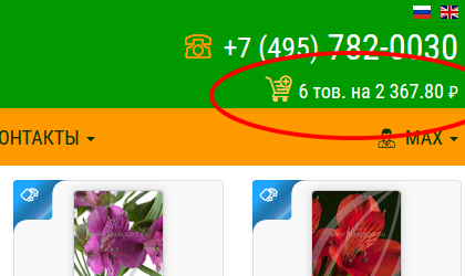 Обратите внимание! В этой версии сайта шапка закреплена и при прокрутке страницы Вы всегда видите информацию о количестве товара в корзине и общей сумме покупки.