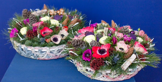 В качестве живого материала ветви пинуса и крашенного черничника.